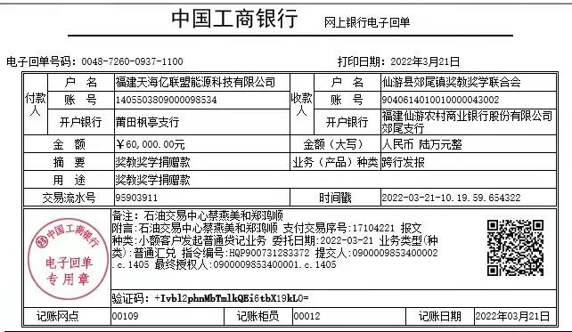 市人大代表、福建天海亿联盟能源科技有限公司董事长郑鸿顺向郊尾镇奖学奖教联合会捐款6万元用于抗击疫情。