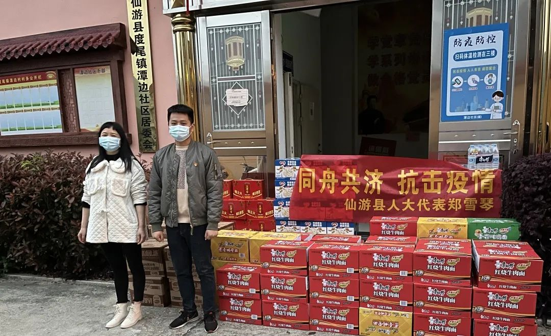 仙游县人大代表郑雪琴向度尾镇人民政府和度尾镇潭边社区捐赠价值1.4万元抗疫生活物资。