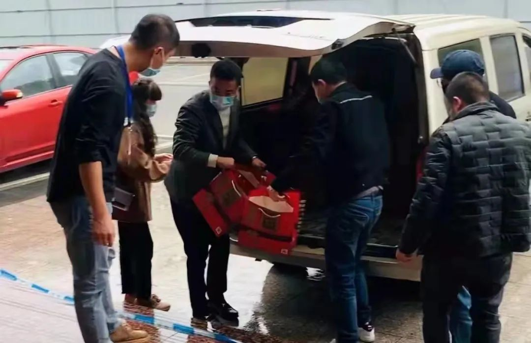 荔城区人大代表、莆田市豪景商贸有限公司法人兼执行董事叶清展为湖景酒店隔离人员捐赠物资。