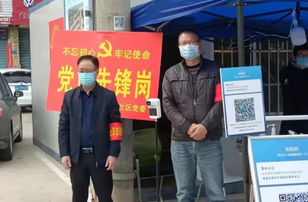 城厢区人大常委会委员、环城工委主任林荣聪,区人大常委会委员翁福铭,在社区卡点开展志愿者服务活动,做好测温查验等工作。