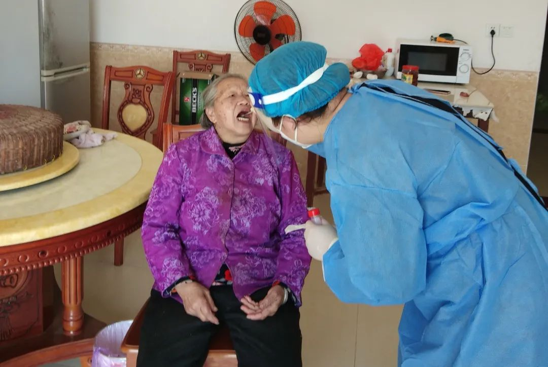 涵江区人大代表郑芳入户上门帮助行动不便的老弱群体采集核酸检测样本。