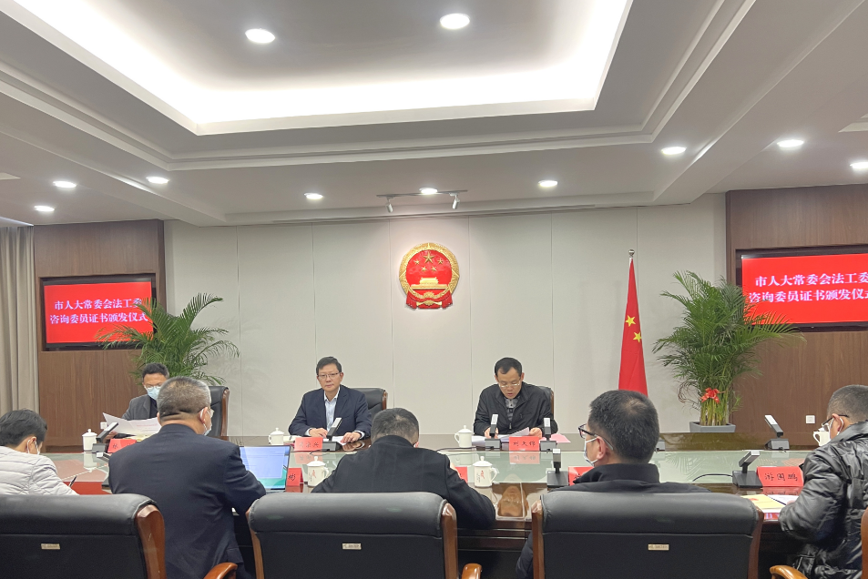 会议通报了我市五年立法规划,宣读了本届法工委咨询委员聘任名单,并向受聘法工委咨询委员颁发聘任证书。会上,部分咨询委员结合工作实际作了发言,就推动地方立法工作、提高立法质量提出意见和建议。