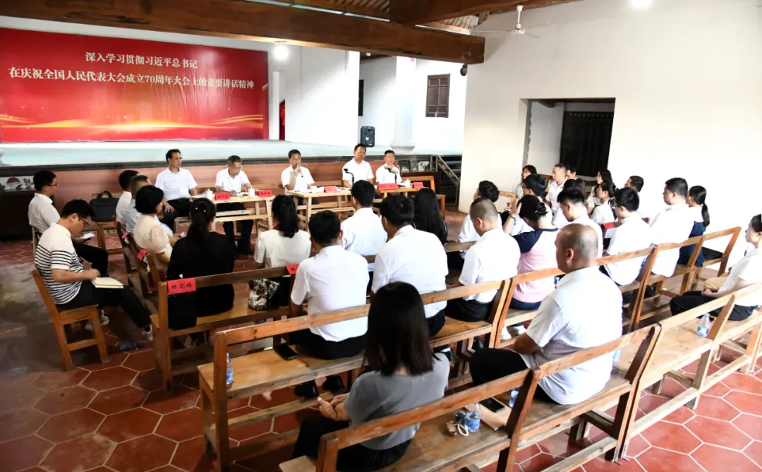 9月20日下午,市人大常委会机关举行青年干部座谈会暨第44期“青年强·悦读分享会”,传达学习贯彻习近平总书记在庆祝全国人民代表大会成立70周年大会上的重要讲话精神,并开展“传承红色基因”主题实践活动。市人大常委会党组书记、主任苏永革,党组副书记、副主任何金清,党组成员、秘书长林秀峰,副秘书长、办公室主任陈桂泉等出席。