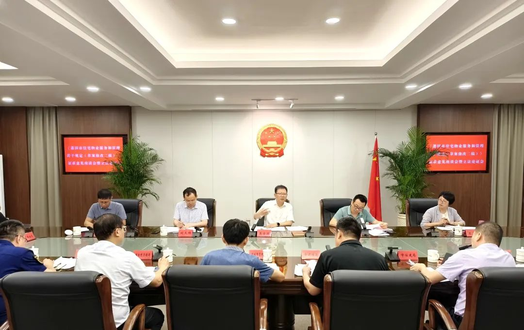 5月23日,市人大常委会副主任吴宗兴主持召开《莆田市住宅物业服务和管理若干规定(草案修改二稿)》征求意见座谈会暨立法论证会。市人大常委会委员宋群胜、刘天锦、兰志容、吴锦程等参加。
